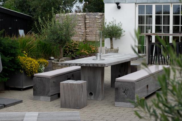 Havemøbler i træ skaber stemning og atmosfære på terrassen