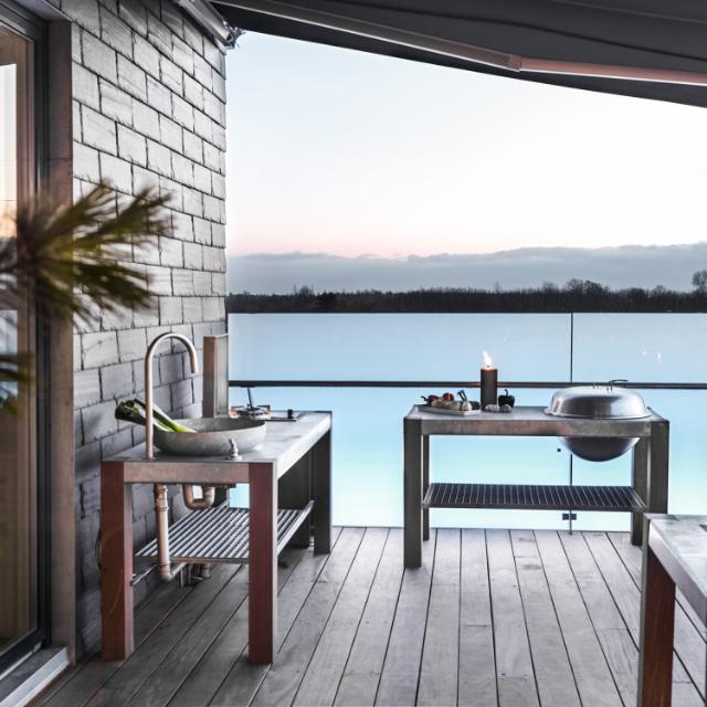 Vi har to modeller som er lige holdbare og vedligeholdelsesfrie – Savra, vores udekøkken i varmebehandlet stål og Nor, vores helt nye udekøkken gennemført i azobétræ. Begge modeller laves på dine mål og hvis du har et godt øje til en indbygningsgrill, så sætter vi også meget gerne den i for dig!
