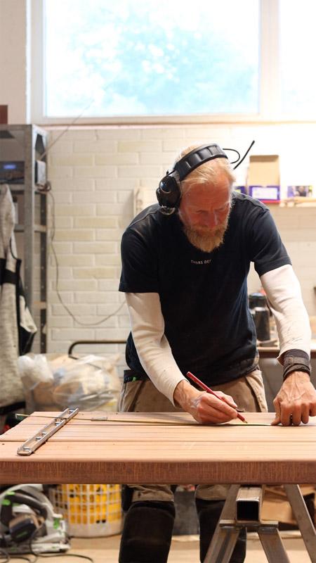 Da Thors Design blev etableret i 2002 var det lige dele på baggrund af en forelskelse i det vejrbidte, bolværkstræ der lå og fyldte på Knudshoved havn, og en indignation over, at en så god ressource blev anset som affald. I Carsten Thors øjne var det hårde og patinerede træ nemlig langt fra affald, men rummede et enormt potentiale.