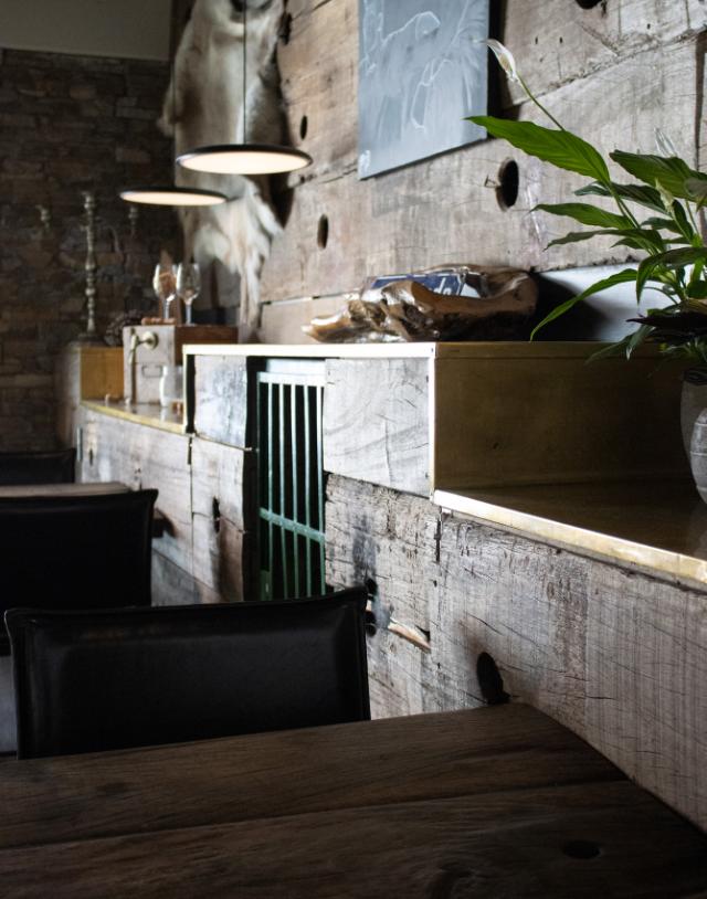 Det massive plankebord med den ujævne overflade har også den ekstra-effekt at den skaber en god akustik i rummet, hvilket igen giver hjernen ro, og kan desuden evt. overflødiggøre øvrige akustiske elementer.