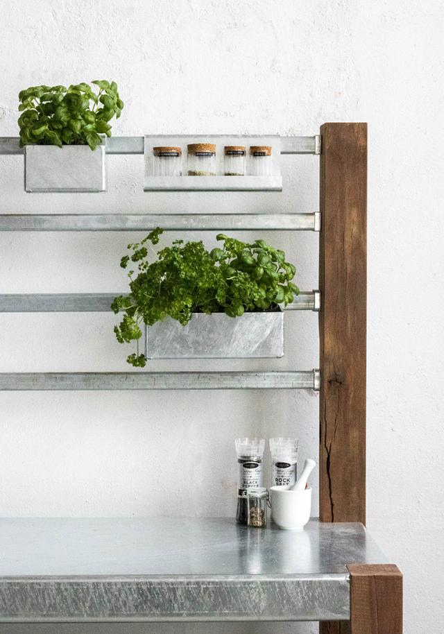 Til vores SAVRA udekøkken har vi designet en bagvæg som gør køkkenet ekstra elegant og lækkert – og ikke mindst praktisk! Bagvæggen giver dig mulighed for at have krydderurter, krydderier og køkkenartikler lige ved hånden når du skal trylle lækre retter frem, og sæbe og opvaskebørste til når du tager opvasken under åben himmel. Bagvæggen er skabt af azobétræ med tværgående firkantede stålrør. Det er udekøkkenets ben som er forlænget op i bagvæggen, hvilket gør bagvæggen til en stabil og holdbar konstruktion.